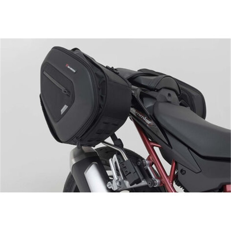 The model-specific development of the spacers and the safety strap with a click closure ensure optimal support and prevent oscillations and vibrations, even at high speeds. The discreet mounting brackets for the spacers are also model-specific. Once mounted, they remain on the motorcycle, and when it's time to ride, the spacers are placed.