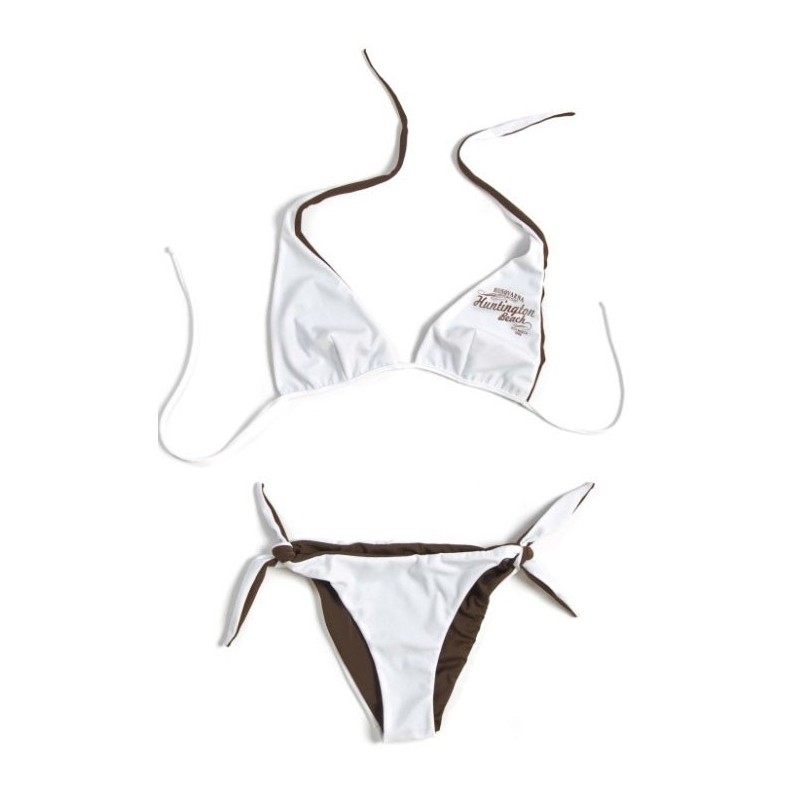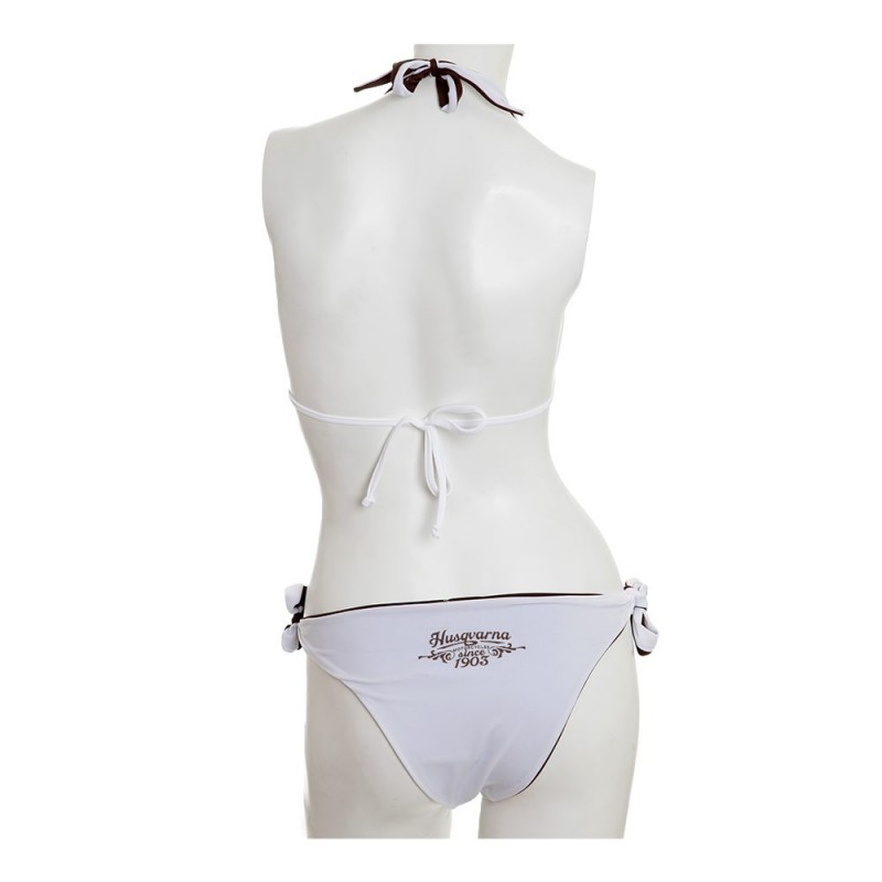 Bikini Vintage Husqvarna en colores blanco y marrón.